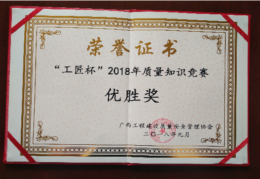 9月26—27日,由广西工程建设质量安全管理协会主办的“工匠杯”2018年质量知识竞赛在广西沃顿国际大酒店举行。九游·体育(jiuyou.com)官方网站喜获总分第四“优胜奖”。