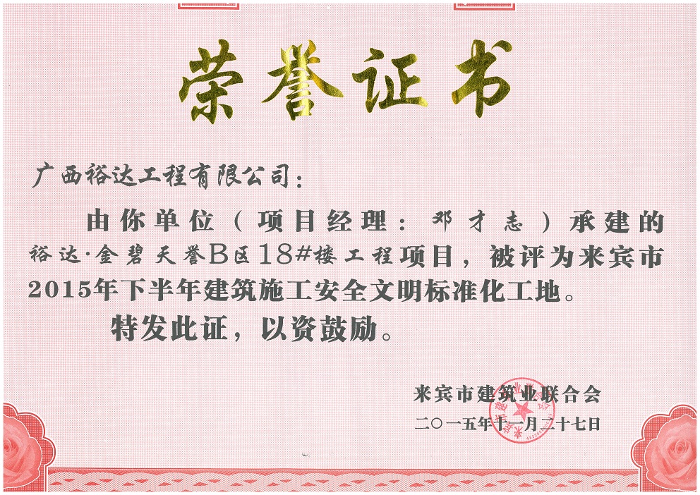 2015年下半年建筑施工安全文明标准化工地(金碧天誉B区18#楼)
