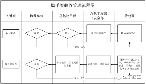 6、对于同一脚手架由多个施工单位共同使用时,总包方必须明确脚手架的管理单位;