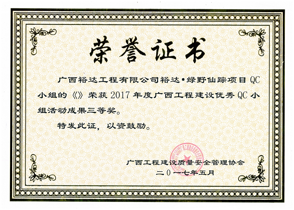 2017年广西工程建设优秀QC小组活动成果鼓励奖